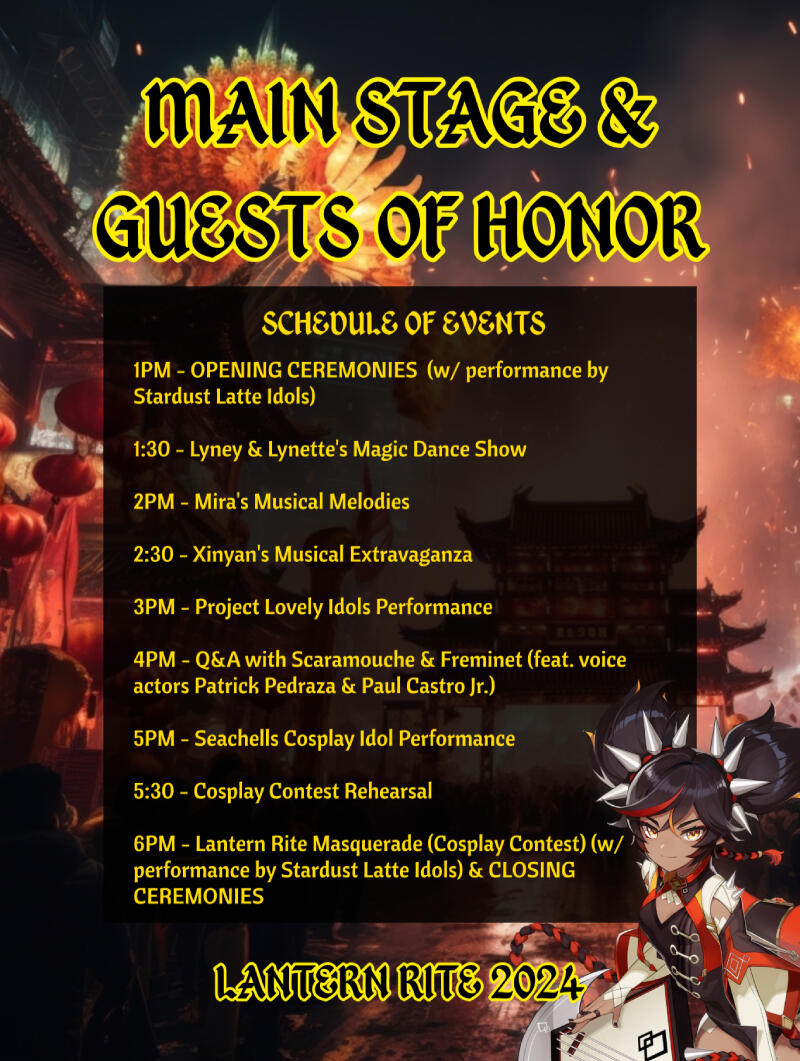 Check out the below posts to learn the schedules for the Main Stage and Panels to plan out your day at Lantern Rite!